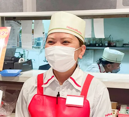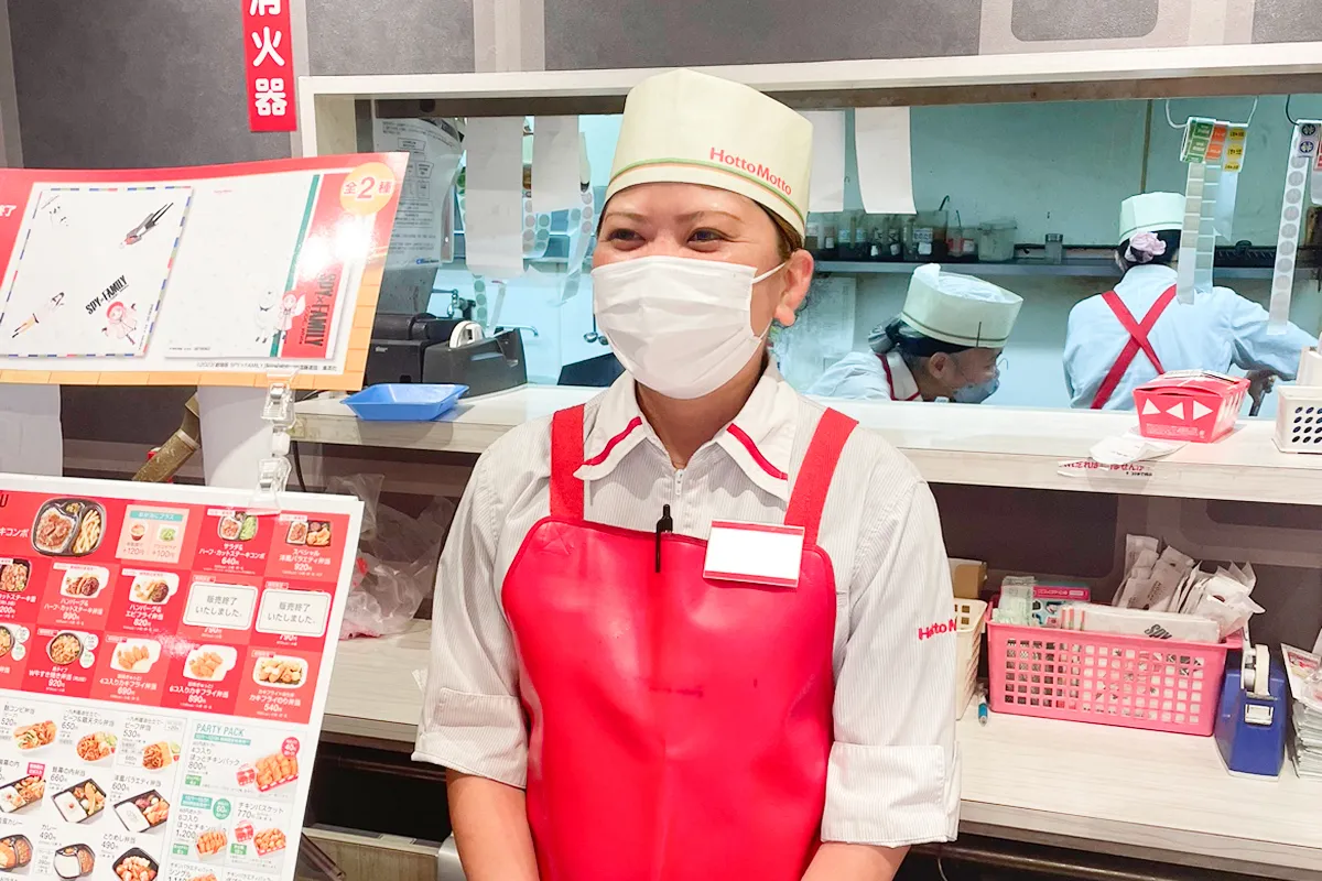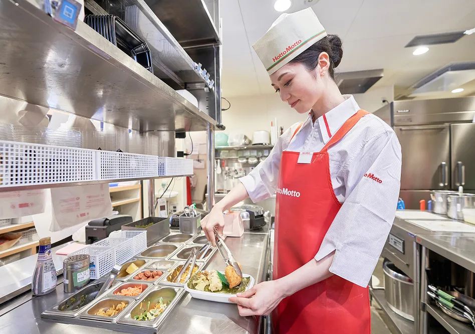 ほっともっとではお米担当・揚げ物担当・盛付担当・レジ担当などのポジションを分けて、連携を取りながら進めていきます。担当をローテーションで回すのでゆくゆくはすべての担当のお仕事をお任せします。店内の状況により他の担当のお仕事を手伝ったりと声を掛け合い協力しながらお仕事を行います。調理方法や清掃方法などのマニュアルを完備しているのでご安心くださいね。