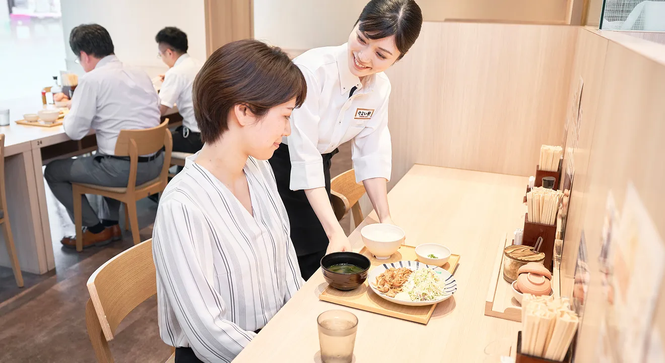 ホールではお席へのご案内やお料理のご提供、キッチンでは仕込みやメニューの調理、食器洗浄などをお任せします。やよい軒ではオーダーは食券制なので直接オーダーのお伺いがなく、お金のやり取りもありません。キッチンはマニュアルを完備しており、先輩が丁寧にお教えするので調理経験がなくても安心して始めることができますよ。